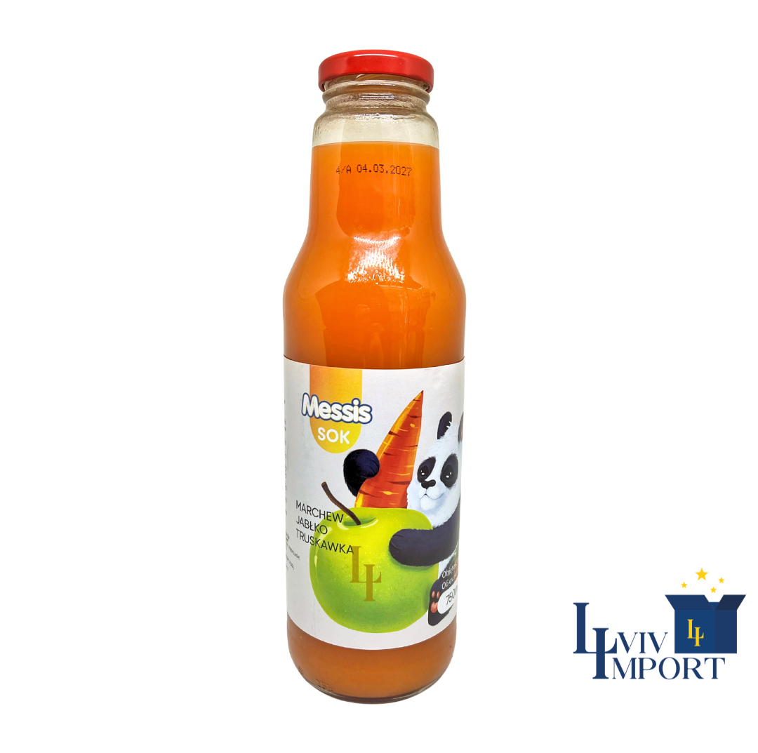 Сік скло MESSIS 750ml "Панда" полуниця+ морква+ яблуко (8 шт/85 ящ)